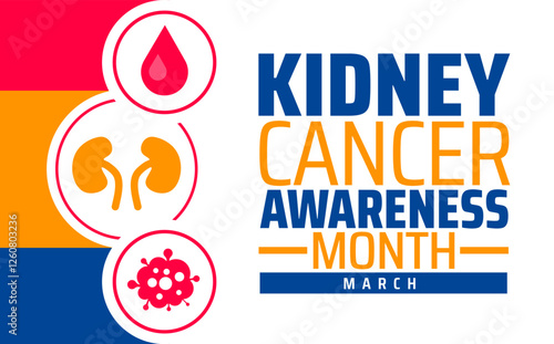 © Neelrong, Naklejka premium Kidney Cancer Awareness Month background banner or poster design template. observed every year in March. Holiday concept. Use to any Template, card, poster, placard, template.