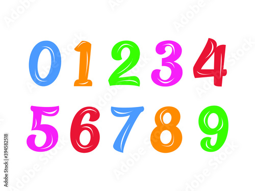 © UnicStyles, Fototapeta premium Kids Colored Cartoon Numbers Set. Vector set of 1-9 digit baby icons. school kids Mathematical Symbols.