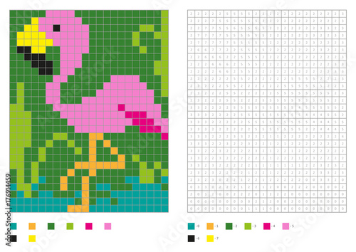 © Aglia, Obraz premium Kids coloring page, pixel coloring with fun bird. Vector illustration