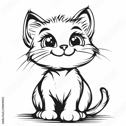 © Ransox, Obraz premium Kids coloring page with a cat, black and white, simple line art style