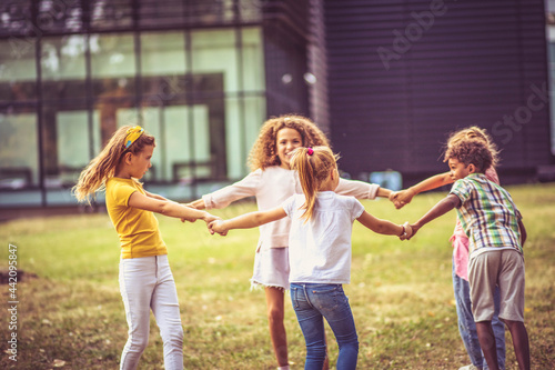 © liderina, Fototapeta premium Kids dancing in schoolyard.