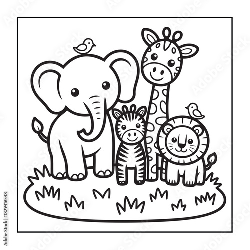 © Amazon KDP Expert, Obraz premium Kids-friendly group of animals set black and white coloring pages.