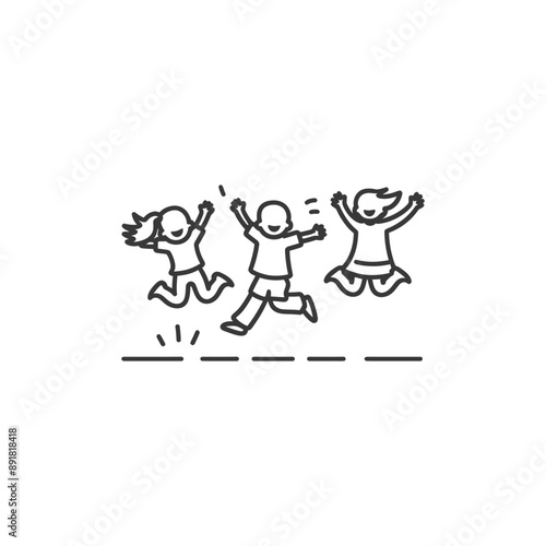 © NikahGeh, Fototapeta premium kids jumping minimalist line art icon logo symbol