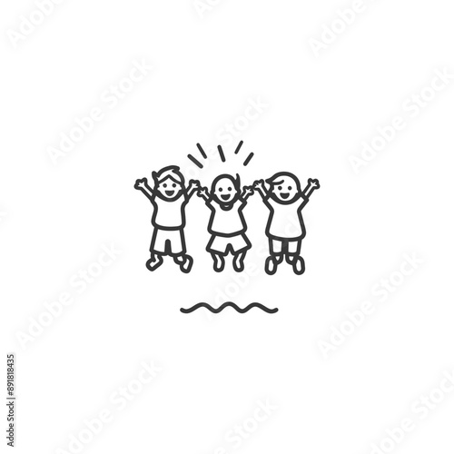 © NikahGeh, Fototapeta premium kids jumping minimalist line art icon logo symbol
