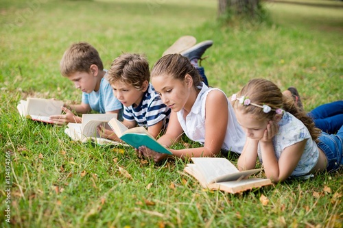 © WavebreakMediaMicro, Fototapeta premium Kids lying on grass and reading books