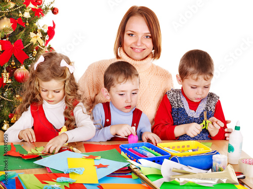 © Gennadiy Poznyakov, Fototapeta premium Kids making Santa card for Christmas.
