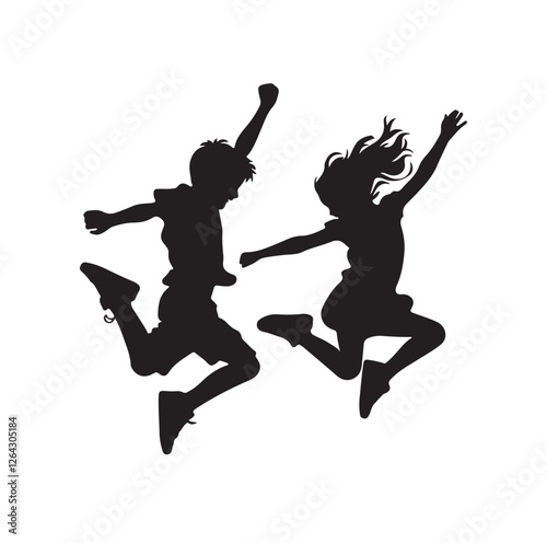 © Joynab, Naklejka premium Kids mid-air jumping silhouette vector illustration