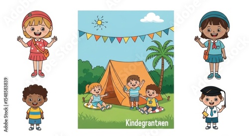 © pranto, Fototapeta premium Kids on Summer Camp Activities with Friends and Play Together