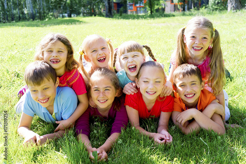 © Nichizhenova Elena, Fototapeta premium Kids outside in park