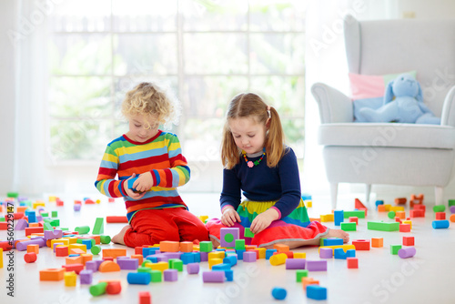 © famveldman, Fototapeta premium Kids play with toy blocks. Toys for children.