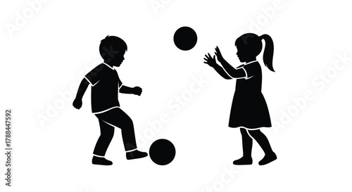 © Khalil, Fototapeta premium Kids playing with balls silhouette vector graphic illustration editable vector