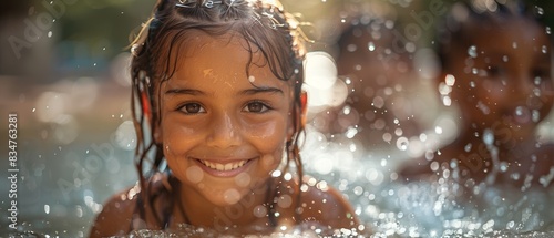 Obraz premium Kids splashing in a water park or pool, having a great time.