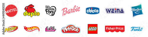 Obraz premium Kids toys company brand logo set. Editorial image. VINNITSIA, UKRAINE. AUGUST 09, 2021.