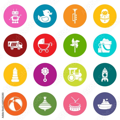 Fototapeta premium Kids toys icons set vector colorful circles isolated on white background