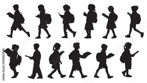 Obraz premium Kids Walking School Silhouettes
