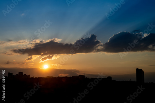 © Serhii, Fototapeta premium Kiev in the sunset sky cloud evening landscape