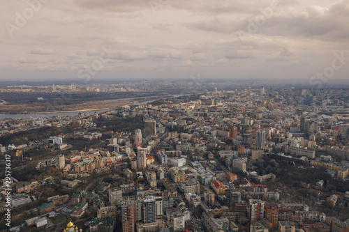 © Vivid Cafe, Fototapeta premium Kiev in Urkaine Drone photo of City center and sleeping areas