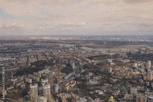© Vivid Cafe, Obraz premium Kiev in Urkaine Drone photo of City center and sleeping areas