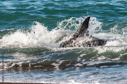 Obraz premium Killer whale hunting sea lions on the paragonian coast, Patagonia, Argentina