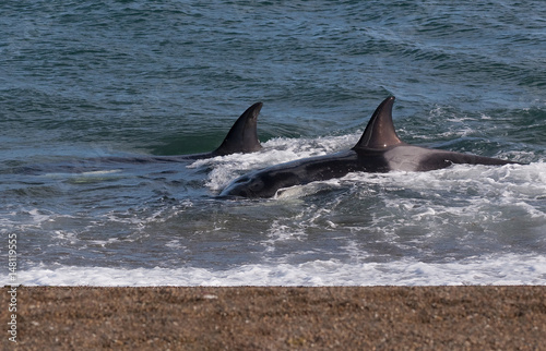 Fototapeta premium Killer Whale, Orca, hunting a sea lion pup, Peninsula Valdez, Patagonia Argentina