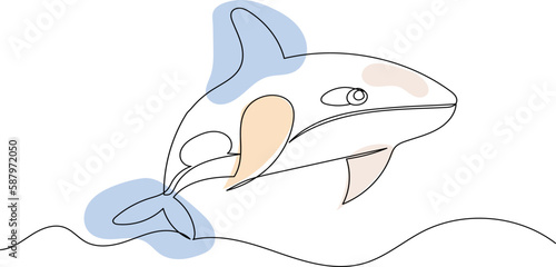 Fototapeta premium killer whale sketch, one continuous line drawing, vector