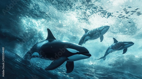 © rawdesign, Obraz premium Killer Whales Leaping Through Waves