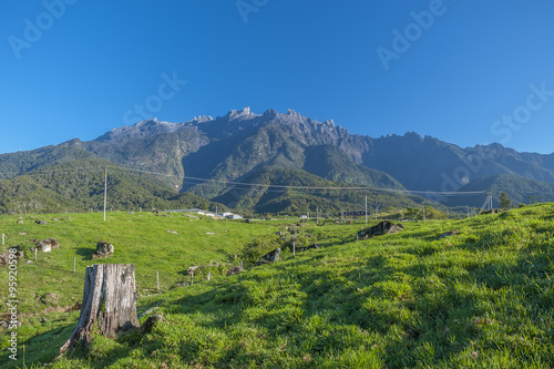 Fototapeta premium Kinabalu mountain view from Desa Dairy Farm, Kundasang, Sabah Borneo, Malaysia