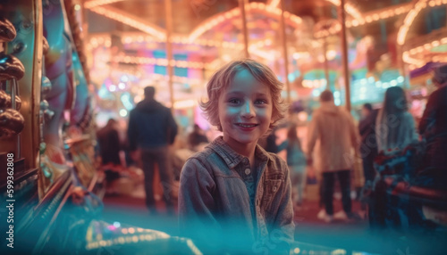 © D. Ott, Obraz premium Kind auf der Kirmes, generative AI