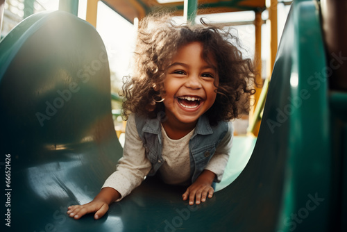 Obraz premium Kind rutscht auf dem Spielplatz
