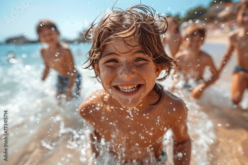 Obraz premium Kinder am Urlaubsstrand, made by AI