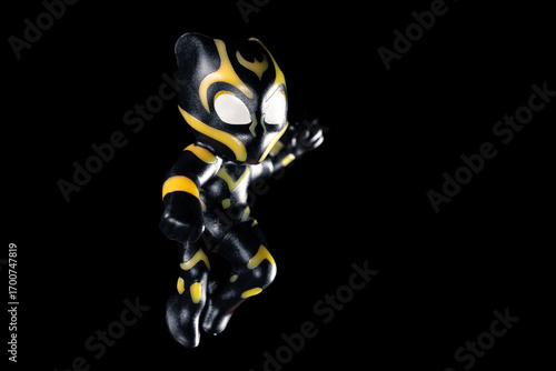 © Klochkov, Naklejka premium Kinder Surprise Marvel Black Panther in a fighting position strikes in a jump