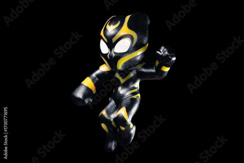 © Klochkov, Fototapeta premium Kinder Surprise Marvel Black Panther jumps and hits