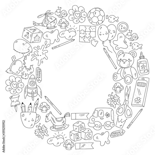 Fototapeta premium Kindergarten and toys. Little children game. Kids playground. Education,...
