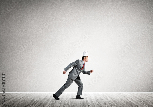Obraz premium King businessman in elegant suit running in empty room