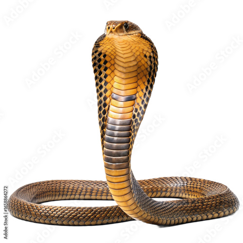 © ARIFUZZAMAN, Fototapeta premium King Cobra coiled with hood expanded isolated on a transparent background