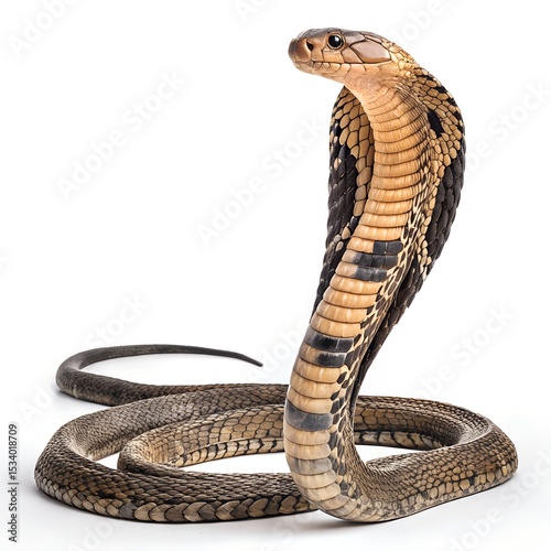 © Ferhaoui Ali, Fototapeta premium King Cobra – Majestic Upright Snake Isolated on Pure White Background