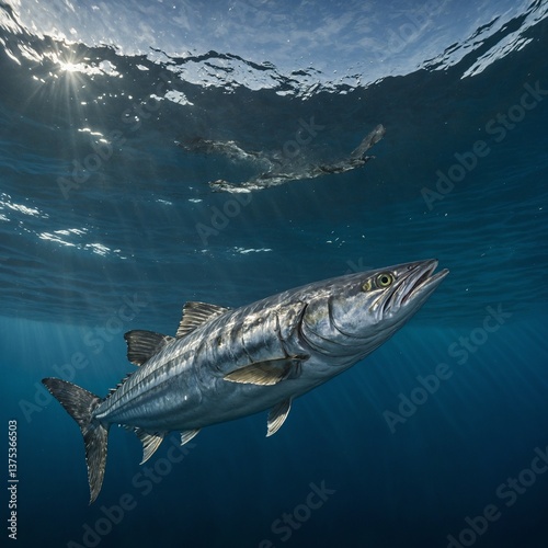 © muhaamd, Fototapeta premium King Mackerel Speeding Through Open Waters
