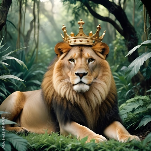 Fototapeta premium King of the jungle, lion with a crown on his head