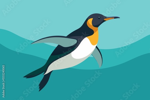 © MdAsabbir, Fototapeta premium King Penguin Gliding Turquoise Waters Underwater Majesty