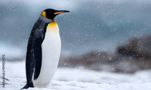© simba kim, Obraz premium King Penguin in the open abyss of antarctica