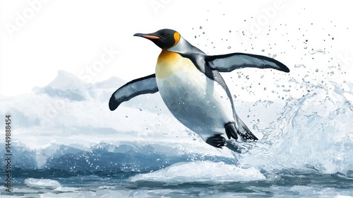 © arisa, Fototapeta premium king penguin leaping into the ocean