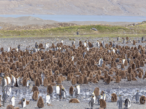 © Roger, Obraz premium King Penguin nursery in South Georgia