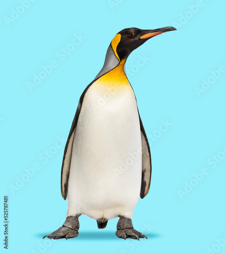 Fototapeta premium King penguin standing in front, on a blue background