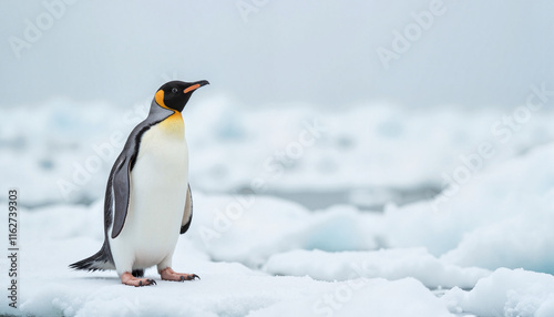 Obraz premium King penguin standing on icy terrain in Antarctic landscape
