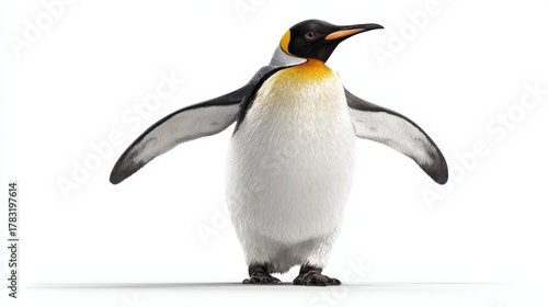 © kurosaki_D, Obraz premium King Penguin Standing Proudly with Wings Outstretched Majestic Antarctic Bird Isolated