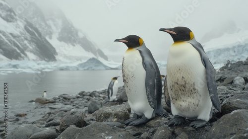© andi, Fototapeta premium King Penguins on Antarctic Rocks