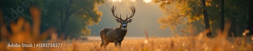 © nattapong, Fototapeta premium King-sized whitetail, impressive rack, peak rut, massive, habitat, majestic