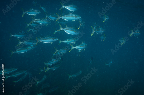 Fototapeta premium Kingfish (yellowtail amberjack) school