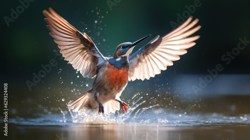 Obraz premium Kingfisher bird over water, in natural environment