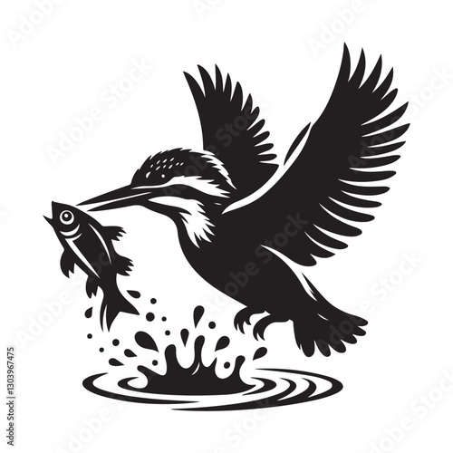 © Creative Image , Fototapeta premium Kingfisher Bird Silhouette Vector Illustration in Water Splash Design